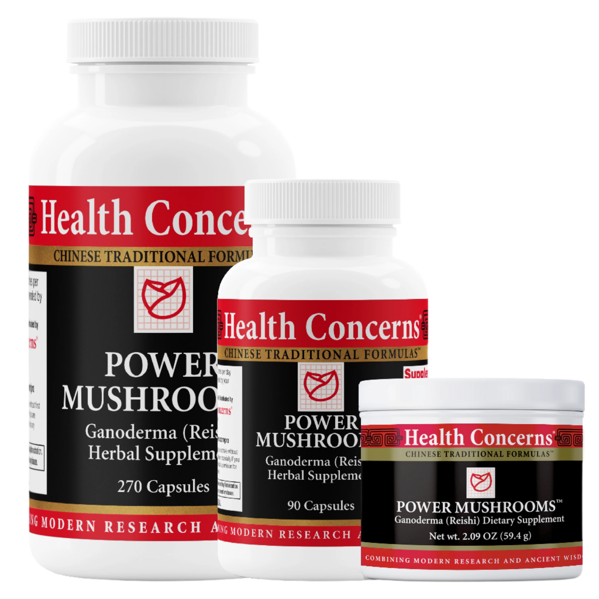 Power Mushrooms combines four functional mushrooms—Ganoderma (reishi), Tremella, Maitake, and Poria—known for their ability to modulate immune activity and support vitality. These mushrooms contain antioxidant and tumor-inhibiting polysaccharides that help restore balance in both deficient and overactive immune systems. Reishi, in particular, has been shown to support heart and liver health, reduce stress, and calm the nervous system.